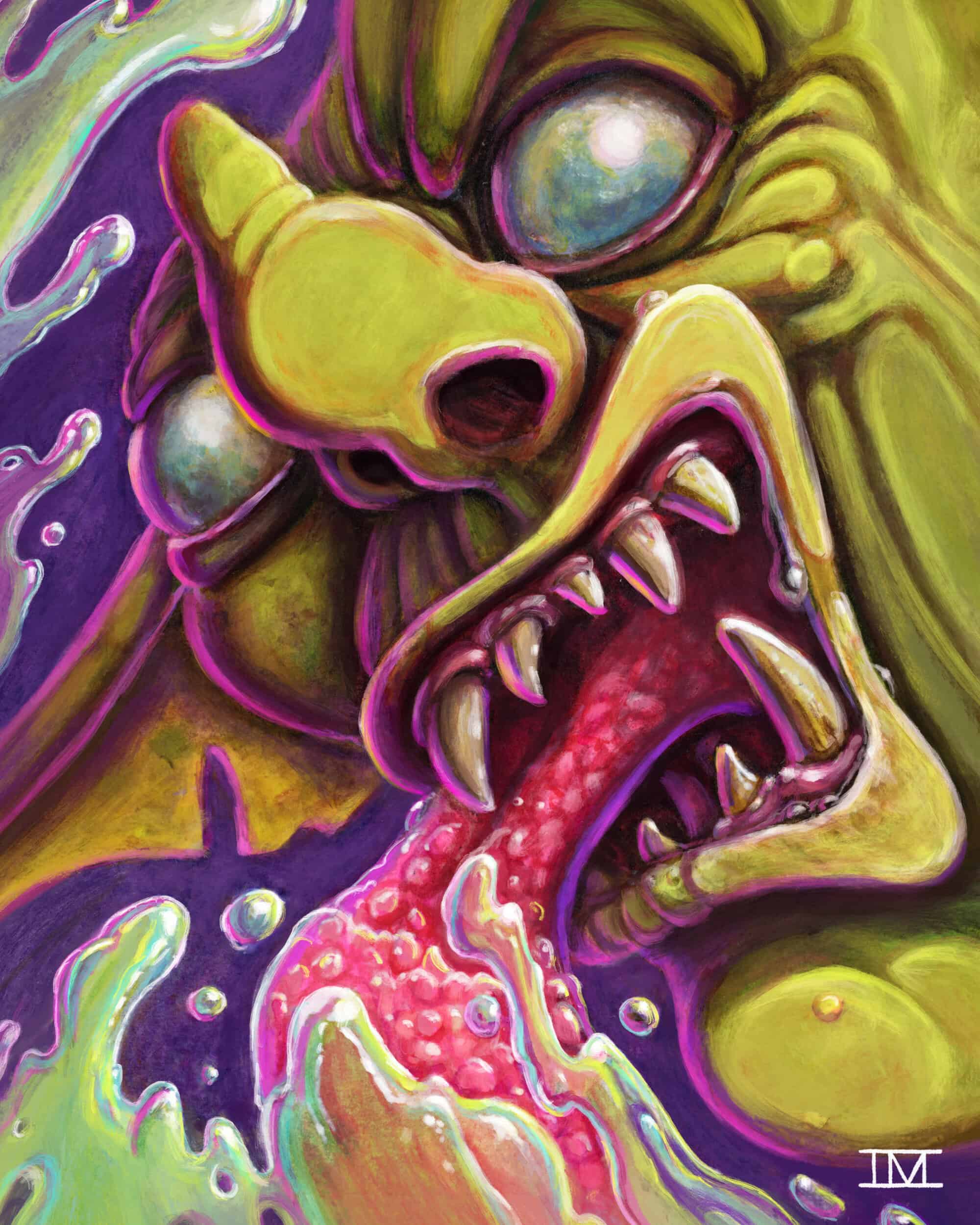 I have always found space facinating, especially nebulae and all things SCIFI. One day, the idea of a Frog with a nebula behind it came to my mind, and I knew I had to paint it. This piece took on a life of its own while I was painting it. As I worked on the value study/underpainting, it showed me something new and how it wanted to be created. While working on the nebula gibblets, they started looking like tadpoles to me, so I leaned into that. I came up with the idea for the life cycle of a frog being formed out of the nebula.